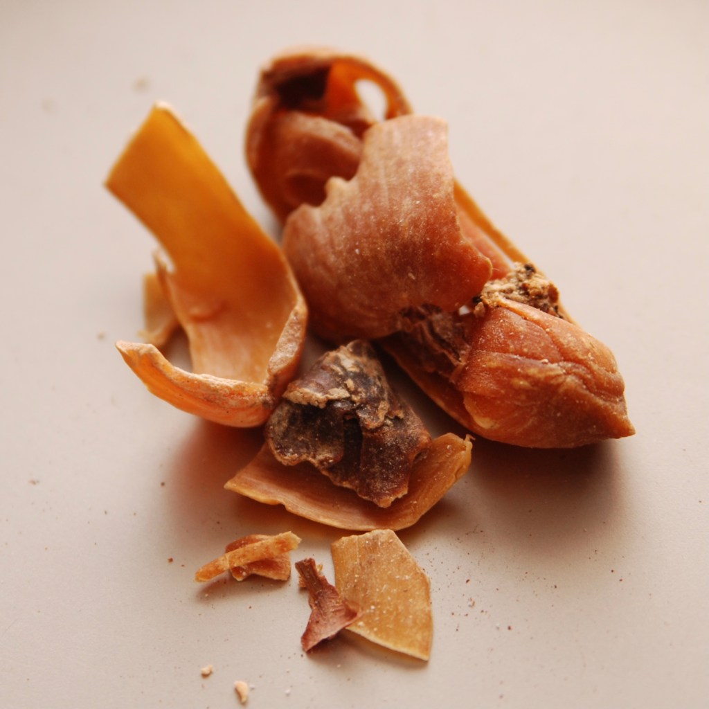 Neben der Nuss möchte ich nun auch noch kurz die Muskatblüte vorstellen. Dieses Gewürz, das eigentlich der Samenmantel ist, in dem die Muskatnuss liegt, ist ähnlich im Geschmack, aber milder, blumiger und honigartig.