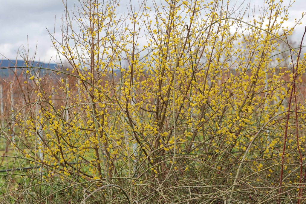 Kornelkirsche: Die Kornelkirsche blüht als eine der ersten Sträucher und ist eine wichtige Trachtpflanze für Bienen, die sie mit viel wertvollem Nektar versorgt. Damit ist sie auch die bessere Alternative zur Forsythie, die als Hybrid kaum Pollen und Nektar für Bienen bildet. Später im Jahr bietet sie Vögeln und auch Menschen leckere Früchte.